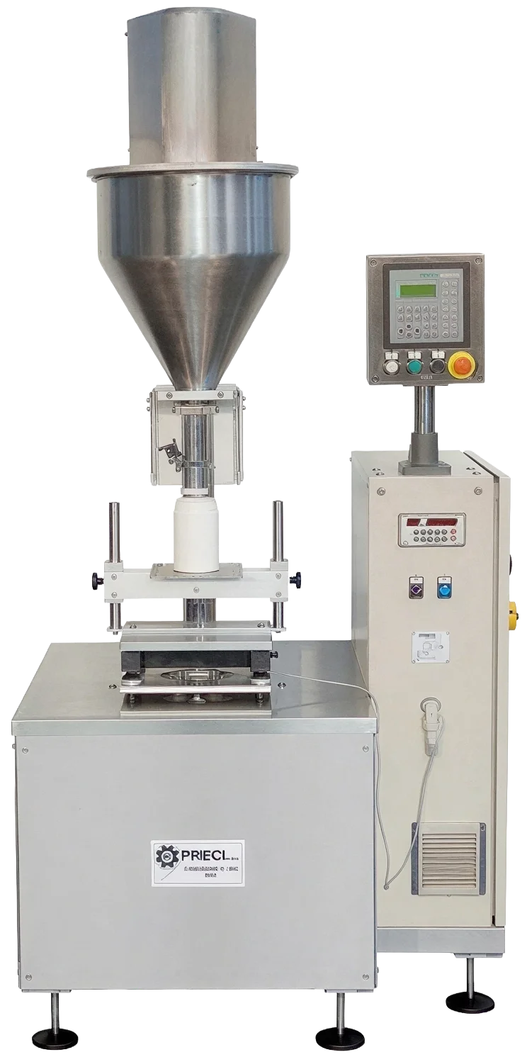 - Velocidad de hasta 1.200 dosis/hora, apta para producciones semiautomáticas de lotes pequeños y medianos con alimentación manual del envase.